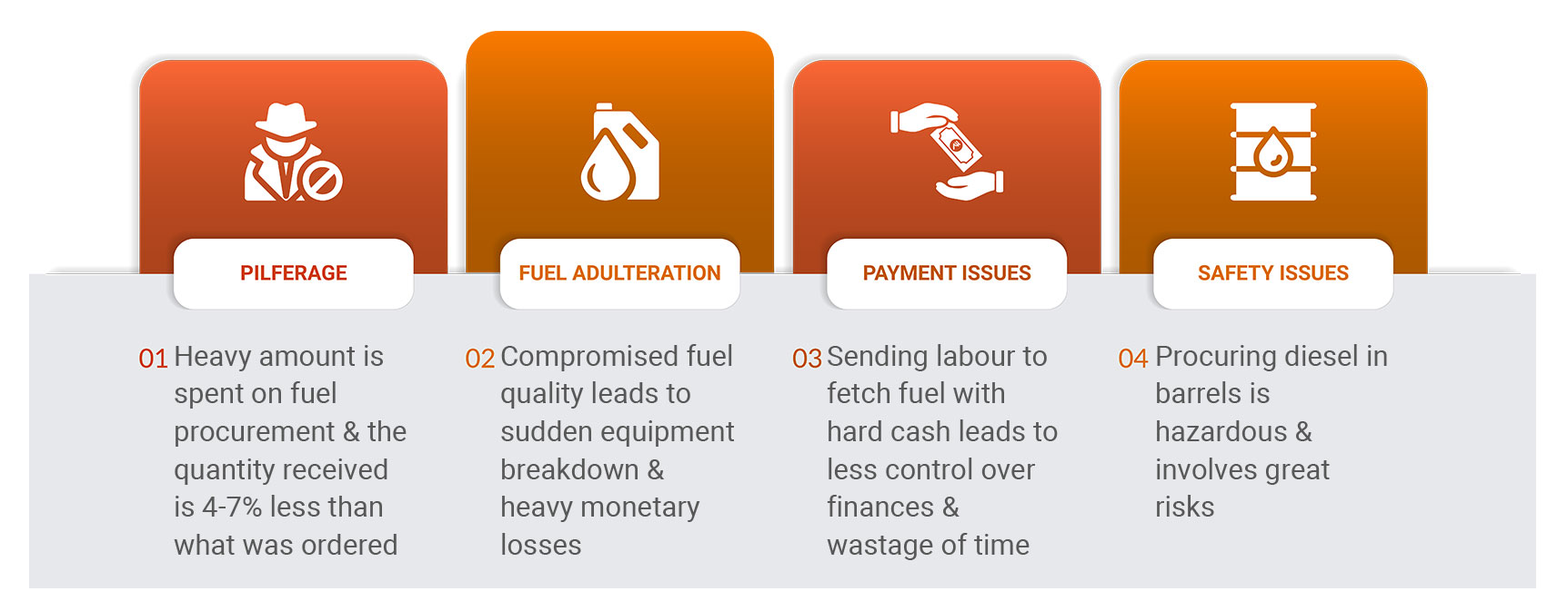 The gap in the electricity supply & demand in India results in frequent power cuts even today. This, in some cases, is a planned activity like load shedding whereas, failure of power grids at times also leads to a ‘No Electricity’ situation in many areas. The Fuel Delivery provides 24X7 power back-up for a stress-free & smooth functioning of the services while ensuring a good customer experience and residential lifestyles.
